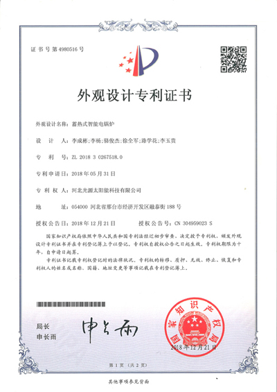 外观设计专利证书--蓄热式智能电锅炉
