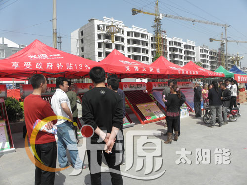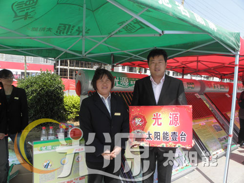 广场的一侧,光源银月亮、浴美人系列太阳能列队排开,漂亮的机型,明码标价的质优价廉产品,吸引了广大老百姓驻足凝神观看!实实在在的优惠政策,在加上工作人员耐心细致的讲解,广大老百姓纷纷踊跃定机!