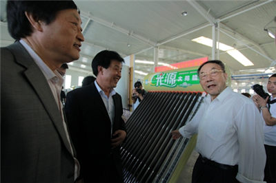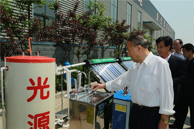 期间,视察团领导在公司董事长李成斌等陪同下,先后视察了公司五连镀全自动真空管生产线、卧式环戊烷发泡水箱生产线、全自动产品组装车间等国内一流生产线,视察了单机、壁挂等太阳能产品成品库,同时认真听取了公司副总邵东坤汇报的关于公司生产和经营环节的现状,和公司发展规划,详细询问了公司太阳能热开水工程业务研究和开发现状。