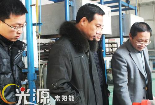 祁主任一行饶有兴致地参观了太阳能热水器生产流水线,并就校企合作、定向培养、学生实习与就业等与总经理刘迎波进行了座谈与交流。