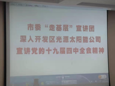 市委“走基层”宣讲团深入开发区光源太阳能公司宣讲党的十九届四中全会精神