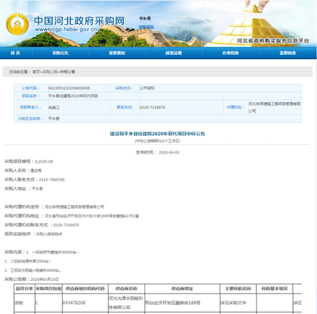 平乡县住建局2020年双代项目中标