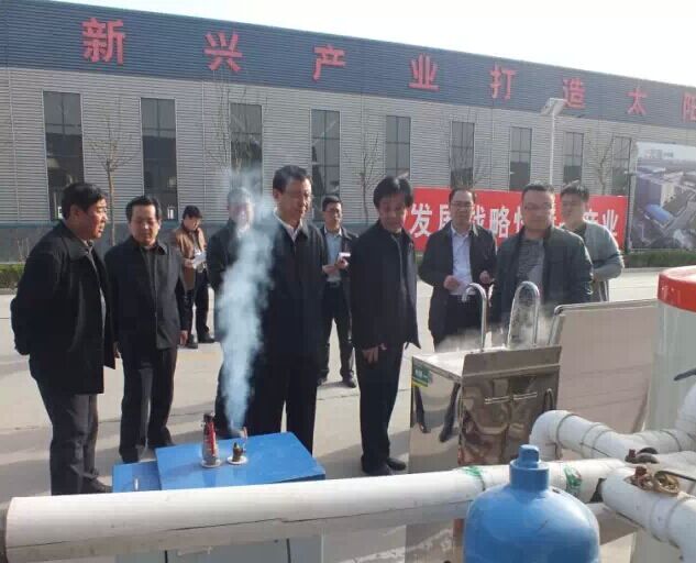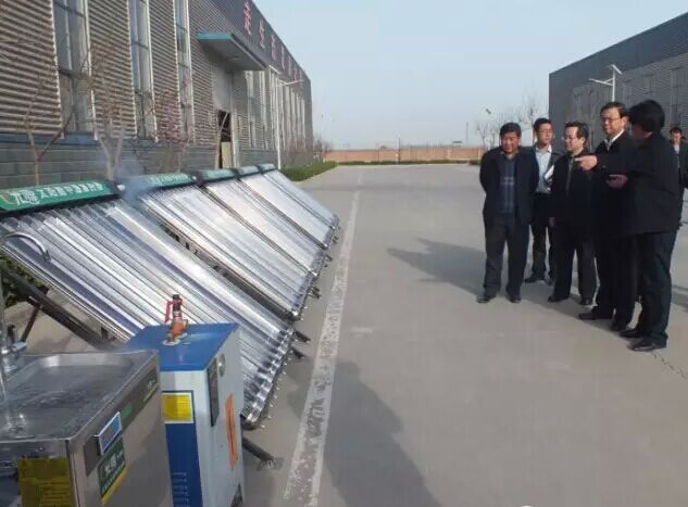 调研组先后考察了光源太阳能内聚光减容太阳能中高温集热管、太阳能集热管全自动数控五连镀生产线、反向积放卧式发泡水箱生产线、超大恒温熟化室,对光源太阳能中高温利用项目成果高度评价。来到热水器车间,看到热火朝天的忙碌生产场景,全机械化,自动化制桶流水生产线,书记喜笑颜开。走出厂房,在光源开水机系统前,惊讶我公司在中高温领域取得的成就,赞扬在这一领域光源太阳能已走在行业前列。听到董事长李成彬先生对于光源先进的发展及今后的规划,给予了高度的肯定,明确指出光源太阳能给邢台其他公司树立了榜样,走科技创新,自主研发的路子,前途不可限量。希望光源公司不断开拓进取,早日上市。
