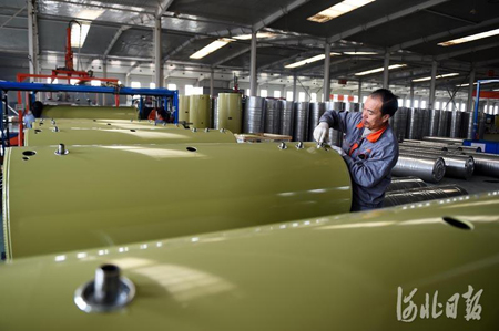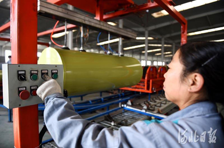 11月10日,河北光源太阳能科技有限公司工人在加工蓄热式智能电锅炉。
